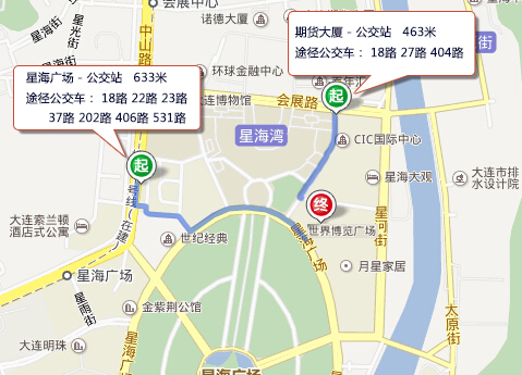 公交車路線:18路,27路,404路 期貨大廈下車南行460米;